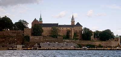az egyetem és a színház mellett. Az épületek nagy része már újkori, főleg klasszicista stílusban épült, de a legszembetűnőbb az volt, hogy nincsenek felesleges dolgok az utcákon, nincsen túldíszítés, nincsenek kovácsolt vassal vagy egyéb fémmel díszített oszlopok és kerítések, egyszerű minden. Egyszerű, de mégis megkapó, talán a letisztult formák ereje hat így. Rengeteg azonban a szobor, mondják is Oslora, hogy a szobrok városa. A királyi palota kertje szabadon bejárható, az őrségváltás csupán 6 katonát jelent. Nyugalom van már itt is, végtelen nyugalom. A sétáló utcáról utunkat az Oslo-fjord felé vettük, ahol elsőként, a nem mindig ilyen nyugalmas időkre emlékeztető Akershus-erődöt néztük meg.