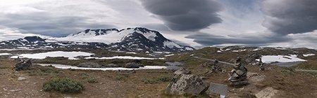 Mégis élt az egész táj, csak úgy norvég módra, komótosan, nyugodtan, nem sietve sehová és feltűnés nélküli emberi kéznyommal a hátán. Itt úgy érezheti magát az ember, mintha a Földnek azon a részén járna, amelyen még ember nem járt. A közel 2500 méteres csúcsok között, olyan magasan, ahol már csak 6-7 Celsius fok volt júliusban, terült el az Óriások földje.