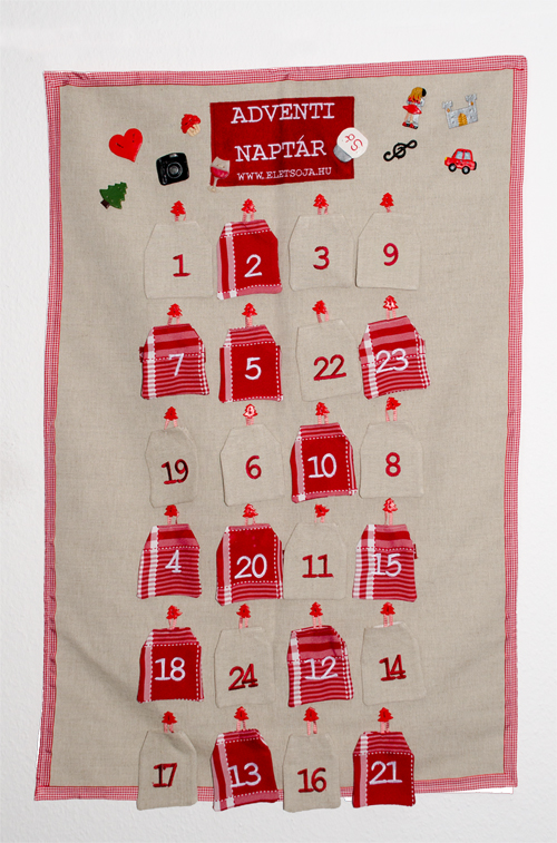 S, hogy hódoljunk egy kicsit az adventi szokásoknak is, egyik hűséges olvasóm, Velez Karola készített egy csodálatos adventi naptárt, ahol minden nap legombolunk egy zsákocskát, s a végén kapunk egy ajándékot.