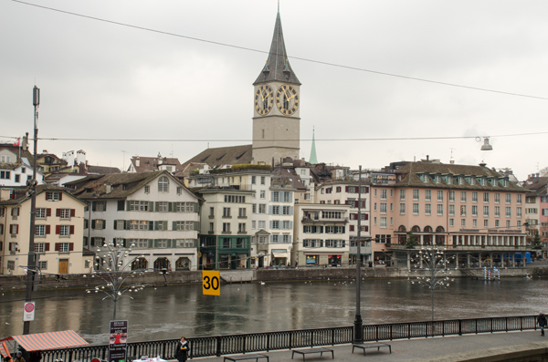 A folyó mellett sétálva csodálatomat vívta ki a Grossmünster két tornya.