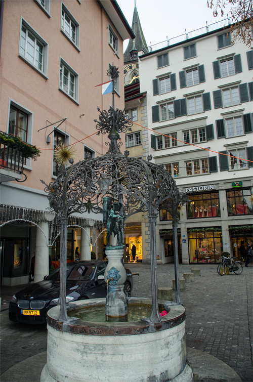 A templom, amely már az 1100-as években is itt állt Zürich, jelképévé vált, s a számomra mindig is lefogadhatóbb egyszerű díszítésű stílust követi. Svájc a víz országa is lehetne, hiszen nincs olyan város, falu, s azok utcája, ahol ne találna a szomjazó turista kutakat. Most a fagypont alatti hőmérsékletben is folyamatosan csobogtak a kutak szikrázóan tiszta vizükben pedig már az advent fényei csillogtak.