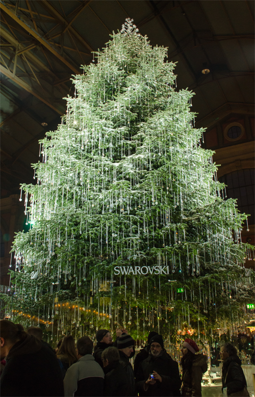 Zürich fenyője azonban még a csillagoknál is szebben csillogott a főpályaudvar aulájában, ugyanis most nem kisebb cég, mint a Swarovski díszítette fel saját kristályaival. Zürichnek nem is lehetne szerényebb karácsonyfája, hiszen itt minden úgy csillog, mint a kristály.